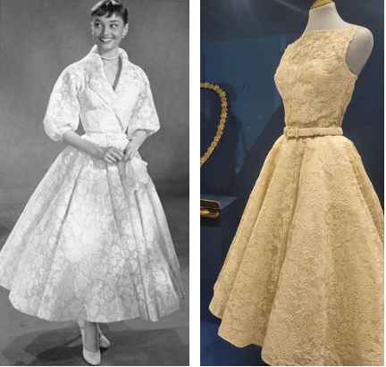 Audrey Hepburn first wore this ivory lace dress, designed by the wonderful Edith Head, in the 1953 Roman Holiday. It was later altered by Givenchy for her to wear to the 1954 Oscars.