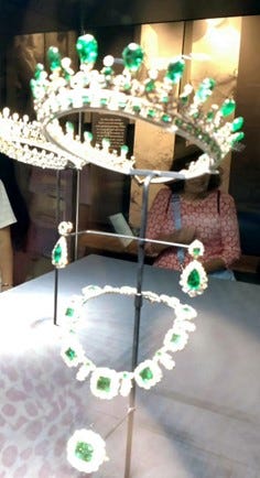 The exhibition not only took you along a walk through the beauty of the palace state apartments but also past over 200 items from ball gowns to court suits and accessories to the stunning ‘Crown Room’ where it was possible to see, up close the stunning emerald and diamond crown, necklace and earrings of Queen Victoria, designed for her by her beloved Albert.